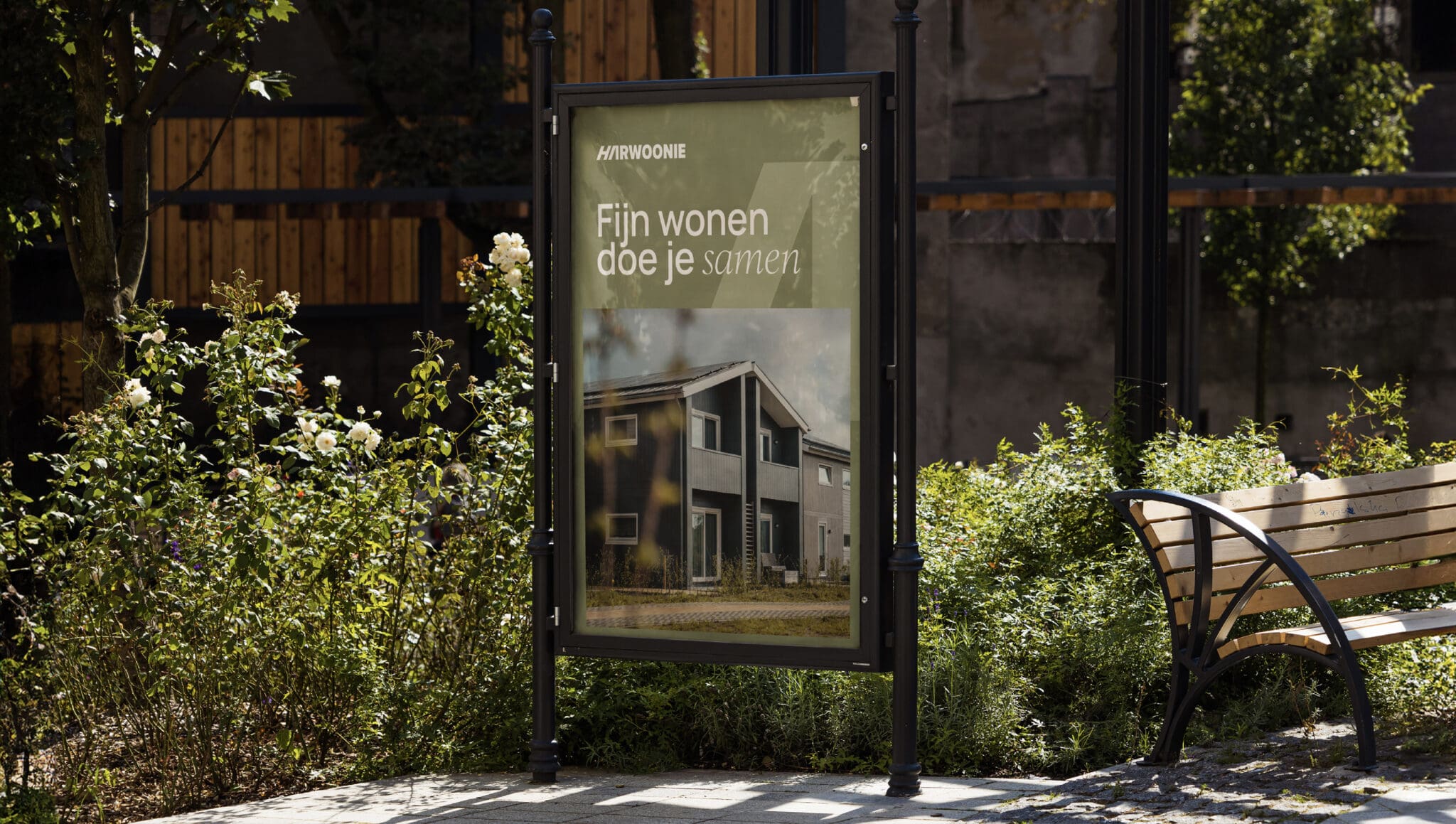 Eén ding kwam continu naar voren: Harwoonie doet het voor de mens. Synergie, daadkracht en warmte waren de kernwaarden waar we de huisstijl op baseerden. Met nieuwe kleuren, een nieuw logo en een nieuwe tagline welke direct de lading dekt ‘fijn wonen doe je samen’.